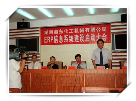 2007-06-29 為有效促進(jìn)企業(yè)管理的現(xiàn)代化、科學(xué)化,進(jìn)一步提升公司的綜合競(jìng)爭(zhēng)力,湖南湘東化工機(jī)械有限公司于去年啟動(dòng)了ERP系統(tǒng)的前期準(zhǔn)備工作,今天上午,根據(jù)ERP項(xiàng)目的進(jìn)展情況,正式啟動(dòng)ERP信息系統(tǒng)建設(shè)。 ERP(企業(yè)資源規(guī)劃)是一種企業(yè)全新管理理念和管理工具,強(qiáng)調(diào)對(duì)企業(yè)的內(nèi)部甚至外部的資源進(jìn)行優(yōu)化配置,提高利用效率。此次我公司斥資300多萬,首期投資150萬元,進(jìn)行信息化建設(shè),依照“整體規(guī)劃,分布實(shí)施,重點(diǎn)突破,效益驅(qū)動(dòng)”的原則,分階段、按步驟地實(shí)施財(cái)務(wù)、物流、人力資源、生產(chǎn)管理、物料需求計(jì)劃等核心模塊建設(shè),對(duì)企業(yè)管理進(jìn)行流程梳理,促進(jìn)公司經(jīng)濟(jì)效益的最大化。圖為和佳軟件公司陳佳總經(jīng)理不遠(yuǎn)千里從北京總部蒞臨我公司出席啟動(dòng)儀式。